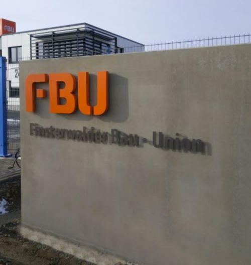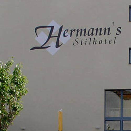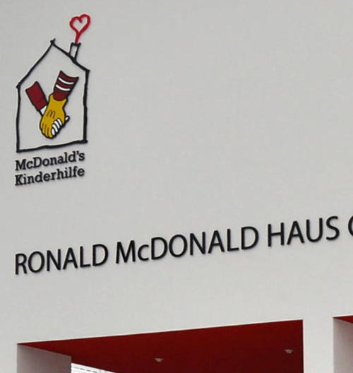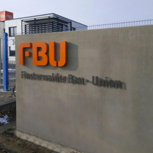 Fassadenbeschriftung mittels Schablonierung oder gefräste unbeleuchtete Schriftzüge/Signets: